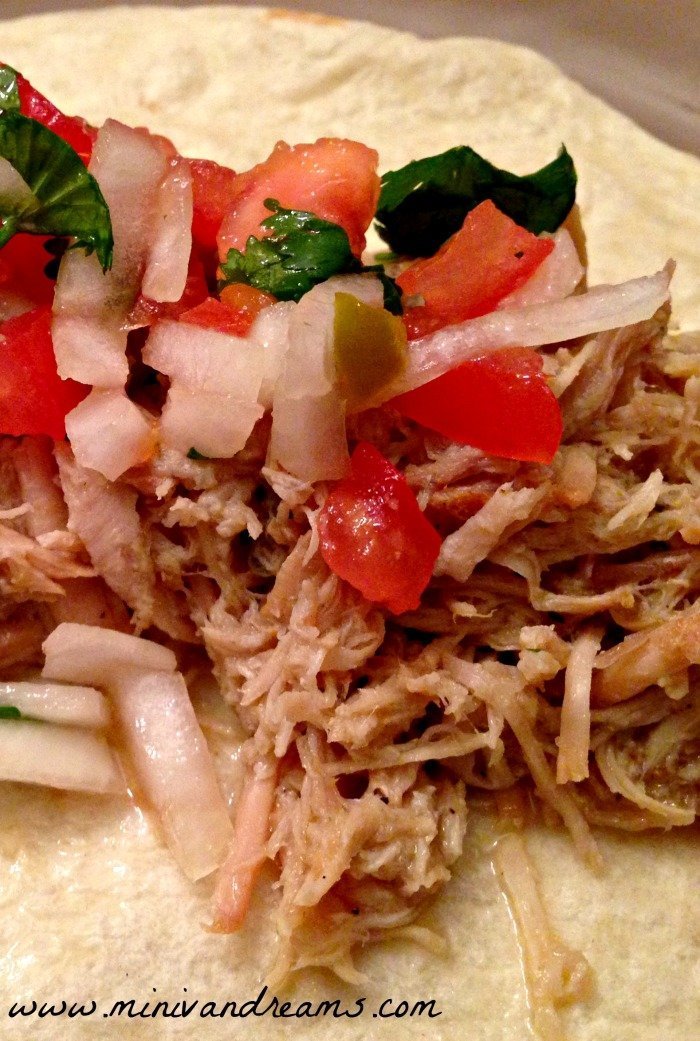 A couple of weeks ago, I was cleaning out my recipe box and came across a handwritten recipe for carnitas. I am not sure who gave it to me or where it came from. But, I had a frozen pork loin in the freezer and thought “what the heck!” It was a rather odd mix of ingredients, as you will see… I threw everything in the Crockpot and hoped for the best. Oh my. Best. Carnitas. Ever. So moist and delicious… we ate them as soft tacos with homemade pico and then made rice bowls with them a few days later. They are even delicious just on a bun! Enjoy!