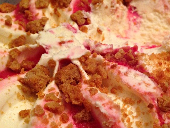I have never tried gelato prior to trying Breyers’. It comes in several flavors: Vanilla Caramel, Raspberry Cheesecake, Tiramisu, Triple Chocolate, Cappuccino, Strawberry Truffle, Mint Chocolate and Chocolate Caramel. I wasn’t sure I was even going to like it. As I stood in front of the freezer section cooling off choosing which ones to try, I decided on tiramisu and raspberry cheesecake.