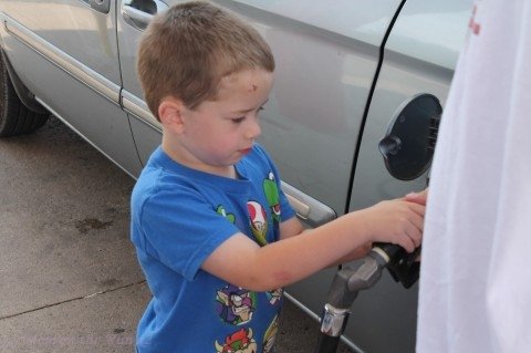 As we came back into civilization, we were running on gas fumes. So, we stopped for gas and the kids had their first lesson in pumping gas with daddy.