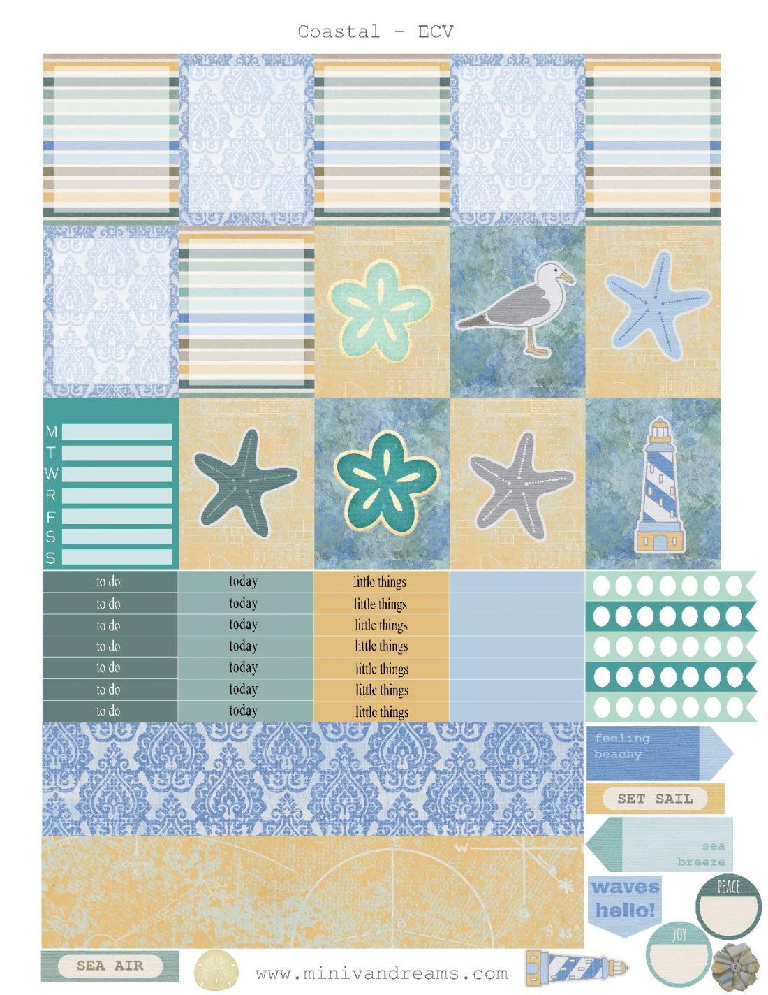 Free Printable Planner Stickers: Coastal (ECV & HP)