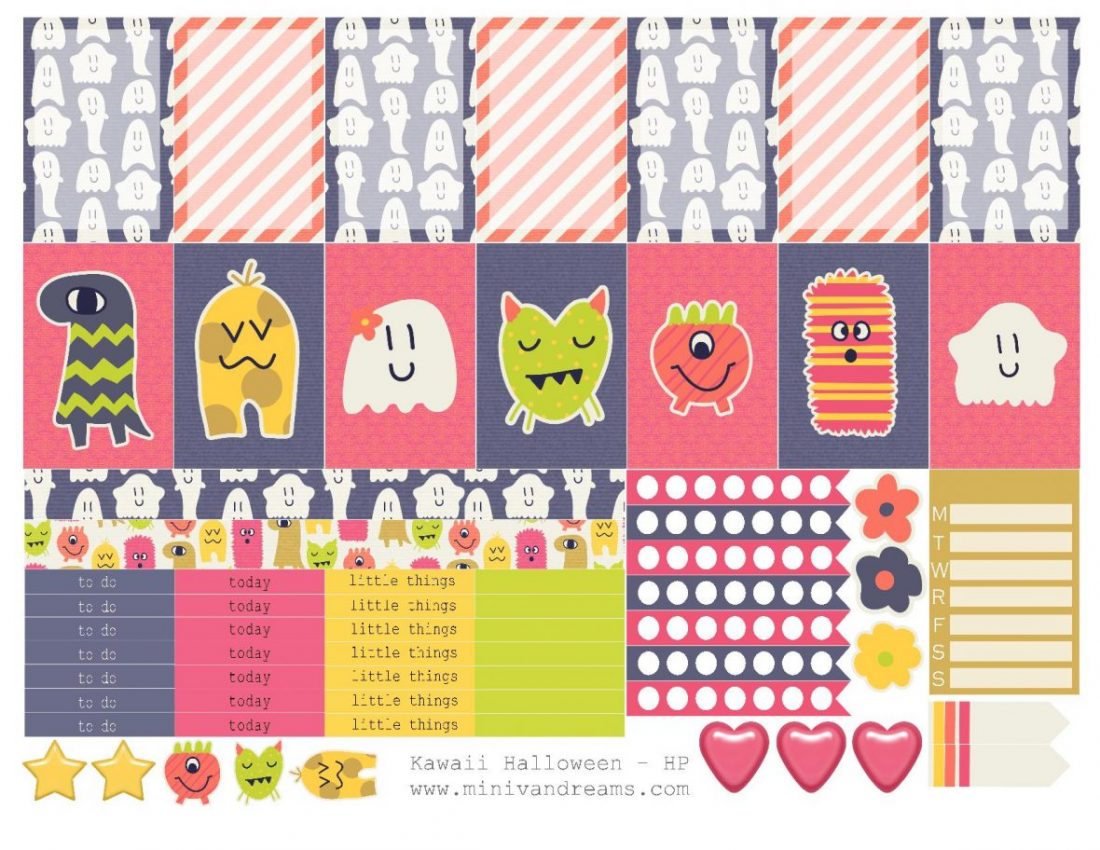 This Kawaii Halloween-themed sticker set includes several fun box covers, headers, stickers, and more!