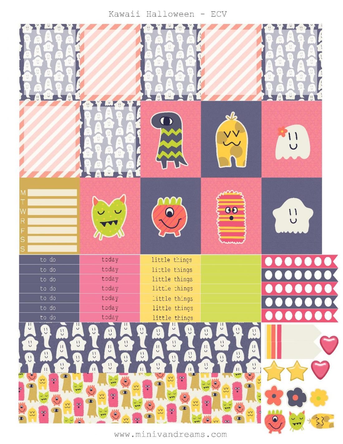 Free Printable Planner Stickers: Kawaii Halloween (ECV & HP) + BONUS