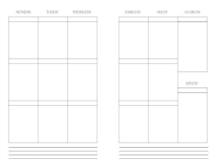 - Cut the planner sheets down the center, then pick both halves up – the Monday-Wednesday should be in your left hand, and the Thursday-Sunday should be in your right. “Close” the halves like a book to quickly put them in order for hole punching.