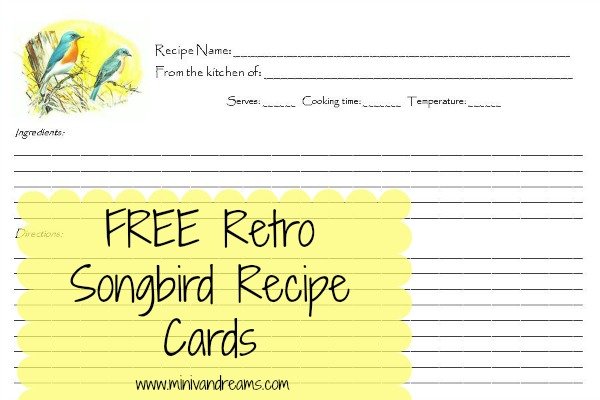 FREE Retro Songbird Recipe Cards