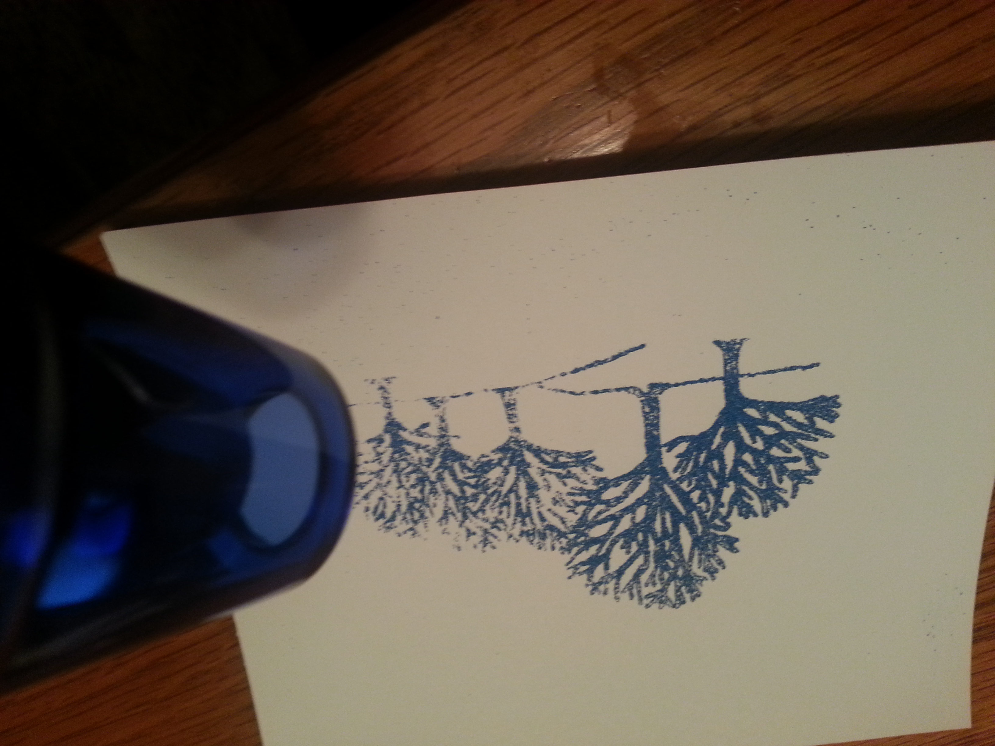 4. Using heat gun, carefully heat embossing powder evenly. You need to hold the image in your hand by the corner when you do this (I didn’t have enough hands or helpers to take the picture and do this.) I recommend using a clothespin to hold the image if it is small. Heat guns get hot, be careful. Not only can they burn you, but they can burn tables/clothes/etc. AND burn your paper and image.