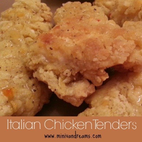 My Italian chicken tenders are a recreation of a delicious staple on a local buffet. Everyday at lunch a local Italian place hs a lunch buffet that is to die for. The first time I ate there I fell in love with their Italian Chicken Tenders