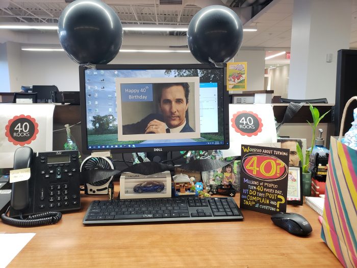 I am the one who usually does the party planning at work – I was worried no one would do anything for me, but I was wrong. My co-workers and friends made my work day a blast!