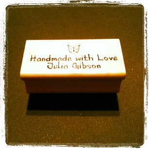 Handmade Stamp. I didn’t know you could do this. I have had rubber stamps made before for my notary license, but never thought to have one made for cardmaking. I was so tired of the cheesy “created by” stamp and then I had to hand write my name in the space. So, I had one made online. With shipping… it was $8.00. No kidding.