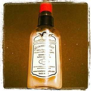 Tattered Angels Glimmer Mist. Oh. My. Goodness. I firmly believe everything is better with sprinkles… and that everything is better with glitter. (Shout out to Yia-Yia who agrees!) I have had this bottle FOREVER. But, I hit almost every card with glitter before I am done. It delivers a nice even “mist” of glitter–nothing harsh or obnoxious. I do suggest starting to spray BEFORE you “pass by” the card or paper and then continue off the paper. Otherwise, you will get droplets of mist.