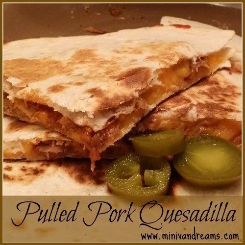 Oh my, this pulled pork quesadilla recipe is the best ever. Β This is one of those recipes, after you taste it, you wonder why you never thought to make them before. Β It’s just that good. Β And quick. Β And easy. Β You will definitely want to keep this one in the rotation for busy school nights or for a quick snack before practice. Β