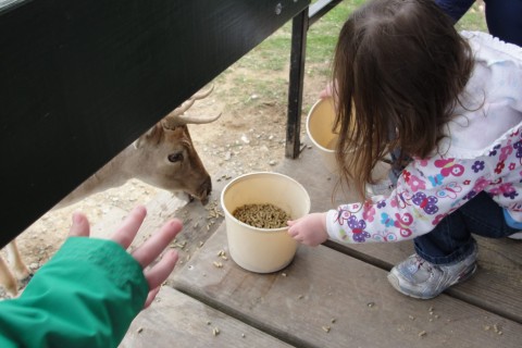 You sit down on the horse-drawn wagon and the driver takes you into a gated area where the animals come right up to eat out of the provided buckets of pellets. It was the most awesome and amazing thing I have ever done.
