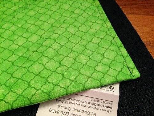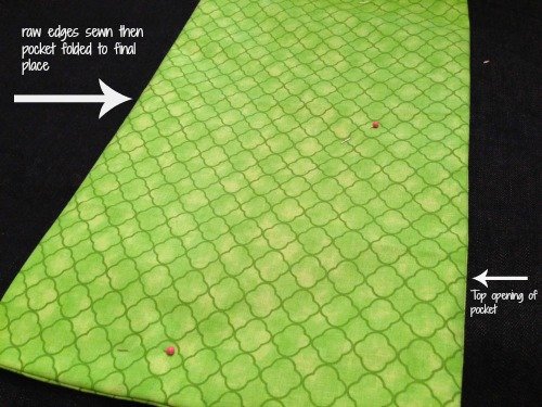 9. Flip the pocket back into its final place. Adjust the bottom corners if needed to ensure they are enclosed within the pocket neatly. Pin in place.